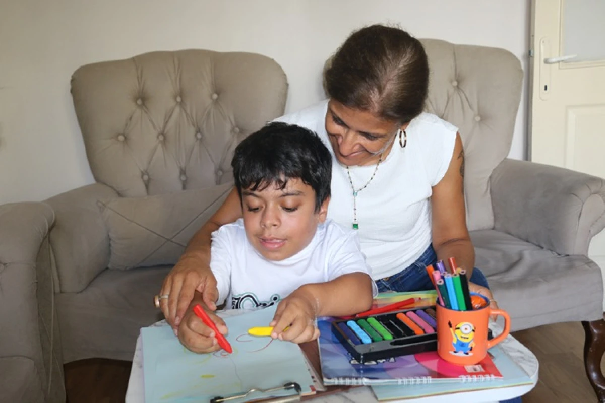 Yanından ayrılmadığı çocuğuyla resim ve yemek yapıp, çeşitli oyunlar oynayan Dinibütün, oğlunun hastalığının engellerini aşmasına destek oluyor.