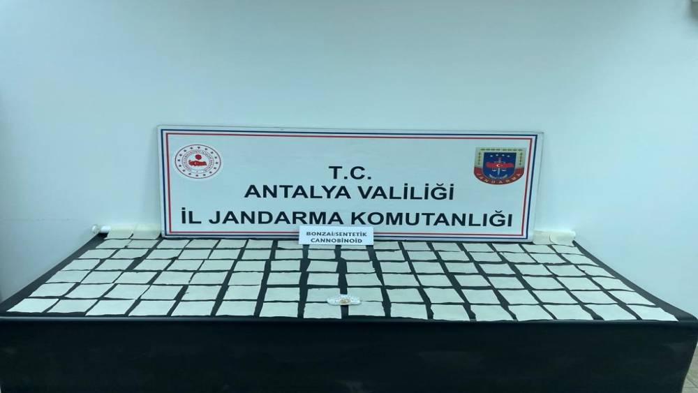 Antalya İl Jandarma Komutanlığı Kaçakçılık ve Organize Suçlarla Mücadele (KOM) Şube Müdürlüğü ve Döşemealtı İlçe Jandarma Komutanlığı ekipleri bir şahsın A4 olarak tabir edilen bonzai/sentetik cannabinoid uyuşturucu madde ticareti yaptığını belirledi. Şüphelinin ikametinde ve üzerinde yapılan aramada; 100 bin kullanımlık bonzai/sentetik cannabinoid uyuşturucu madde ile uyuşturucu hap ele geçirildi. Gözaltına alınan şüphelinin ifade işlemlerinin devam ettiği bildirildi.
