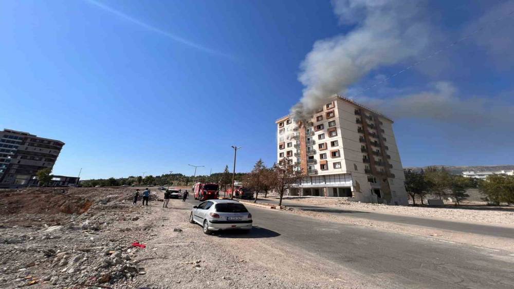 Kahramanmaraş’ta Ebrar Sitesi yanında bulunan ve ayakta kalan tek orta hasarlı binada çıkan yangın, paniğe neden oldu.