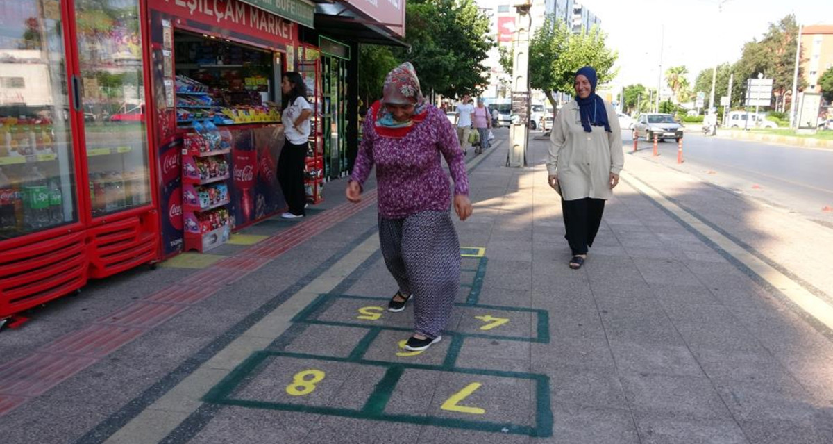 Mersin'de bir esnafın iş yerinin önüne çizdiği geleneksel sek sek oyunu, yoldan geçen 7'den 70'e her yaştan vatandaşın ilgisiyle karşılaşıyor. İş yerinin önünden geçerken sek sek oynayanlara zaman zaman çikolata da ikram eden esnaf Kahraman Baykal, o anları da güvenlik kamerasıyla kaydediyor. Her yaştan vatandaşın ilgi gösterdiği kaldırımda neredeyse herkes sek sek oynayarak geçiyor.