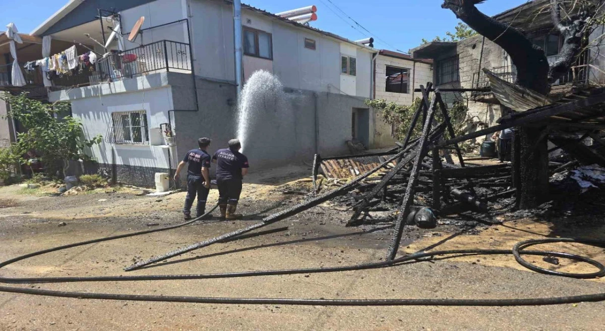 Adana'da bir evin bahçesinde çıkan çardak yangını paniğe neden oldu.