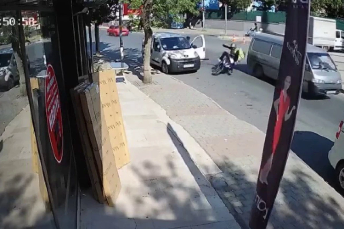 Antalya'nın Manavgat ilçesinde sürücüsünün direksiyon hakimiyetini kaybetmesi sonucu devrilen motosikletin sürücüsü yaralandı. Sürücünün yardımına çevredeki vatandaşlar koşarken, kaza anı güvenlik kamerasına yansıdı.
