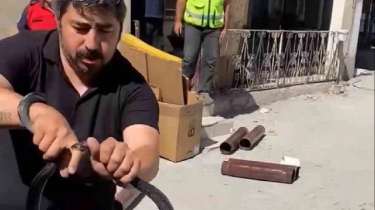 Hatay'ın Payas ilçesinde yaşayan ve bölgede "Yılancı Kemal" olarak tanınan Kemal Başer, eve giren 1 metrelik yılana parmağını kaptırdı. Yılan tarafından parmağı ısırılan Başer'in sakinliği dikkat çekerken, çevredeki vatandaşların korkusu kameraya yansıdı.