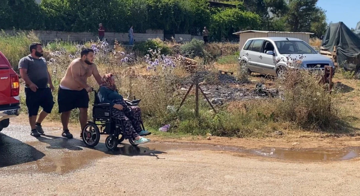 Yangın sırasında duygusal anlar da yaşandı. Evine yaklaşan alevlerden son anda kurtarılan yaşlı ve felçli bir kadın, görevliler tarafından tekerlekli sandalyesiyle güvenli bir alana taşındı. Bazı vatandaşlar ise evlerinin çatılarına çıkarak yardım çağrısında bulundu.