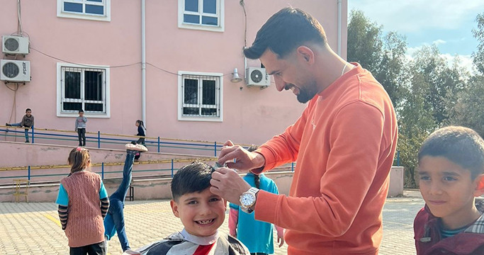 Kozan’da Halit Dağlı İlköğretim okulunda sosyal sorumluluk etkinlikleri çerçevesinde gönüllü olan kuaför Adem Kaya ve kadın kuaförü Pınar Ölmez, minik öğrencilere ücretsiz tıraş ve saç tasarımı yaptı.