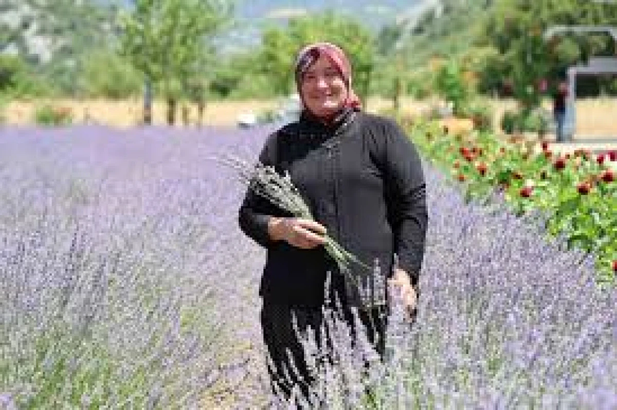Tenkerli Mahallesi'nden Bedia Arı devlet desteği ile 5 dönümlük arazide lavanta üretimi yaptıklarını belirterek, "Devlet desteğiyle lavanta bahçesi kurduk. Her gün yüzlerce kişi geliyor. Gelen bir daha geliyor. Çiçekleri çok severdim. Bu iş emek istiyor ama çok güzel. Lavanta demetlerini 30 TL'den satıyoruz. Çok mutluyuz" dedi.