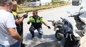 Antalya'nın Manavgat ilçesinde son dönemlerde artan trafik kazaları nedeniyle özellikle motosiklet sürücülerine yönelik trafik ekiplerinin denetimleri sıklaştı. Manavgat'ın değişik noktalarında eş zamanlı gerçekleştirilen denetimlerde trafik ekipleri başta kask kullanımı olmak üzere eksiği bulunan motosiklet sürücülerine ceza yağdırıyor. Hastane Caddesinde yapılan denetimlerde trafik ekiplerinin kask takmadığı için durdurduğu bir motosiklet sürücüsünün aday sürücü olduğu, daha öncede 2 defa motosikleti kasksız kullandığı belirlenince 75 ceza puanına ulaştığı için sürücü belgesi iptal edildi. Trafik polisinden ceza puanı nedeniyle sürücü belgesinin iptal edildiğini öğrenen motosiklet sürücüsü uzun süre trafik ekiplerine bir kez göz yummaları konusunda dil döktü.