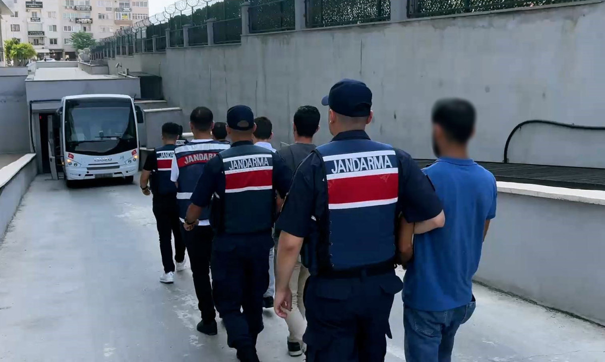 Gözaltına alınan şüpheliler jandarmaya götürüldü.