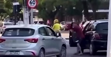Brezilya'da kaydedilen görüntülerde, iki sürücü belirlenemeyen bir sebeple birbirlerine girdi. Sürücülerden biri aracından inerek eline geçirdiği kılıçla birlikte diğer araca saldırmaya başladı. Bu esnada gaza basan araç sürücüsü, kılıçlı saldırganı defalarca kez çarparak etkisiz hale getirdi.