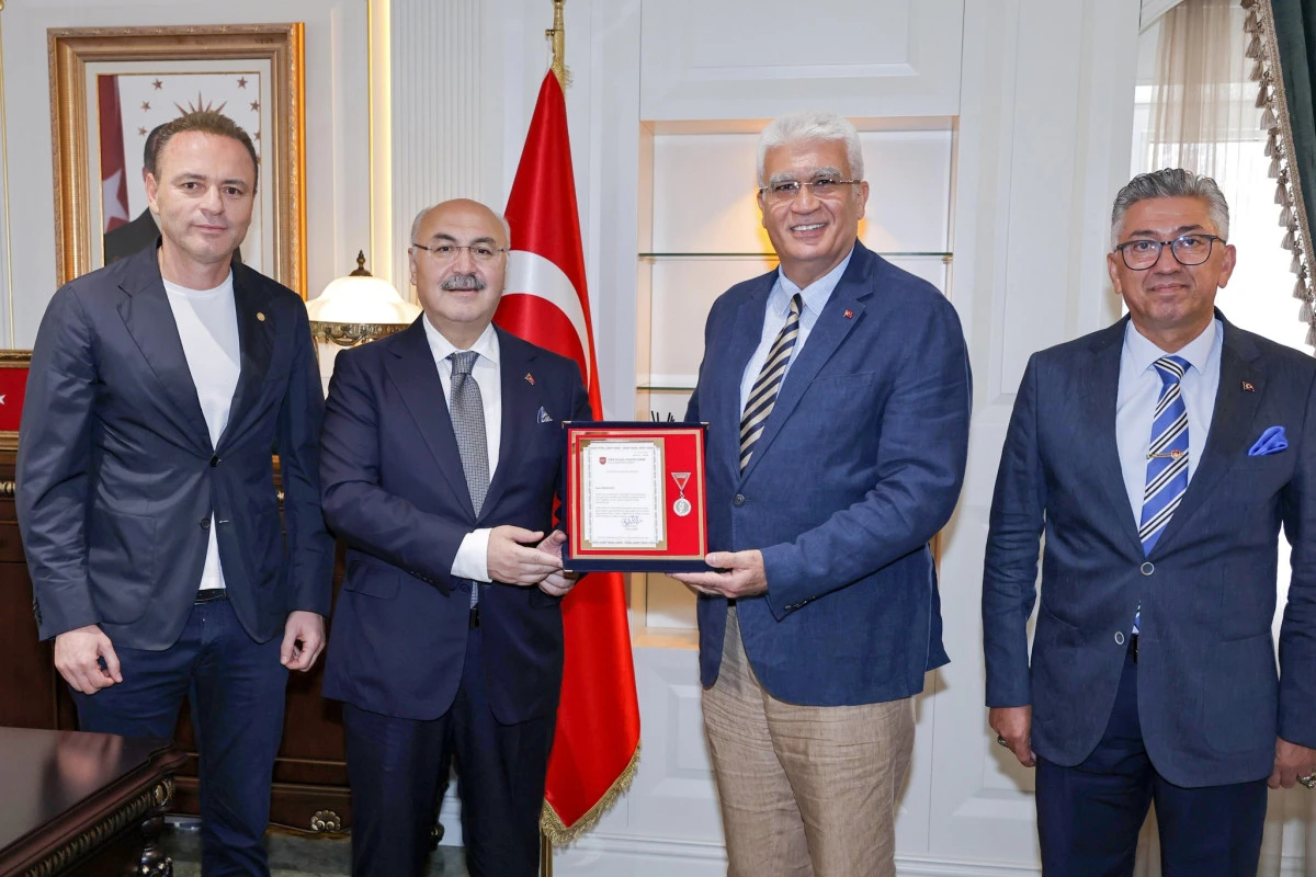 Adana Valisi Yavuz Selim Köşger, Türk Silahlı Kuvvetlerini Güçlendirme Vakfı'na yaptıkları bağışlar nedeniyle Hacı Sabancı Organize Sanayi Bölgesi Başkanı Bekir Sütcü ve Beyin, Sinir ve Omurilik Cerrahisi Uzmanı Prof. Dr. Orhan Şen'e plaket takdim ederek, gösterdikleri vatanseverlik ve duyarlılıktan ötürü teşekkür etti.