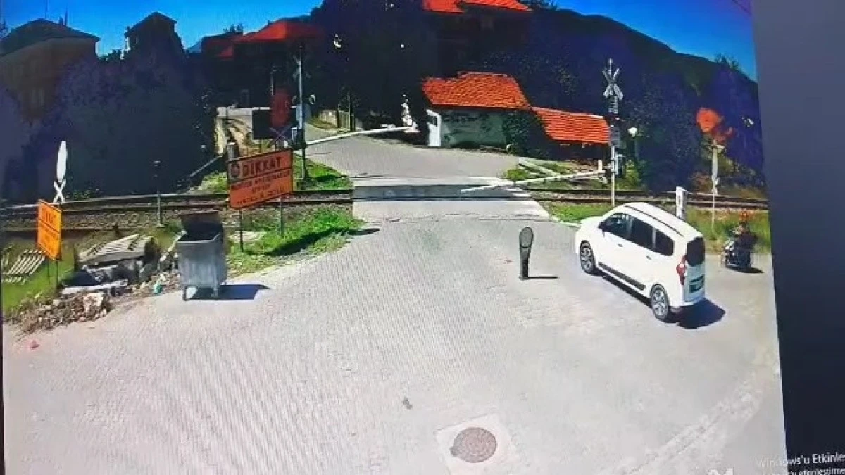 ZONGULDAK'ın Çaycuma ilçesinde, hemzemin geçitte trene çarpan motosikletin sürücüsü S.D. hafif yaralandı. Kaza, güvenlik kamerasına yansıdı.